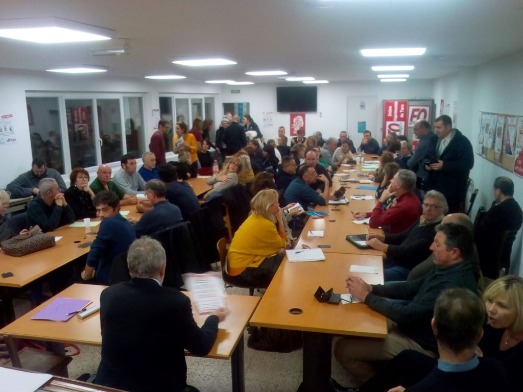 Mardi 12 novembre 90 militants Force Ouvrière de tous les secteurs, fonction publique territoriale, fonction publique hospitalière, poste, action sociale, métallurgie, chimie, DGFIP, Education Nationale, Pôle Emploi, assurances, Maisons familiales et rurales, retraités étaient réunis avec Patrick Privat, trésorier de la confédération, pour préparer la riposte contre le hold up du gouvernement qui prétend détruire tous les régimes de retraite existant et les remplacer par un régime par point.