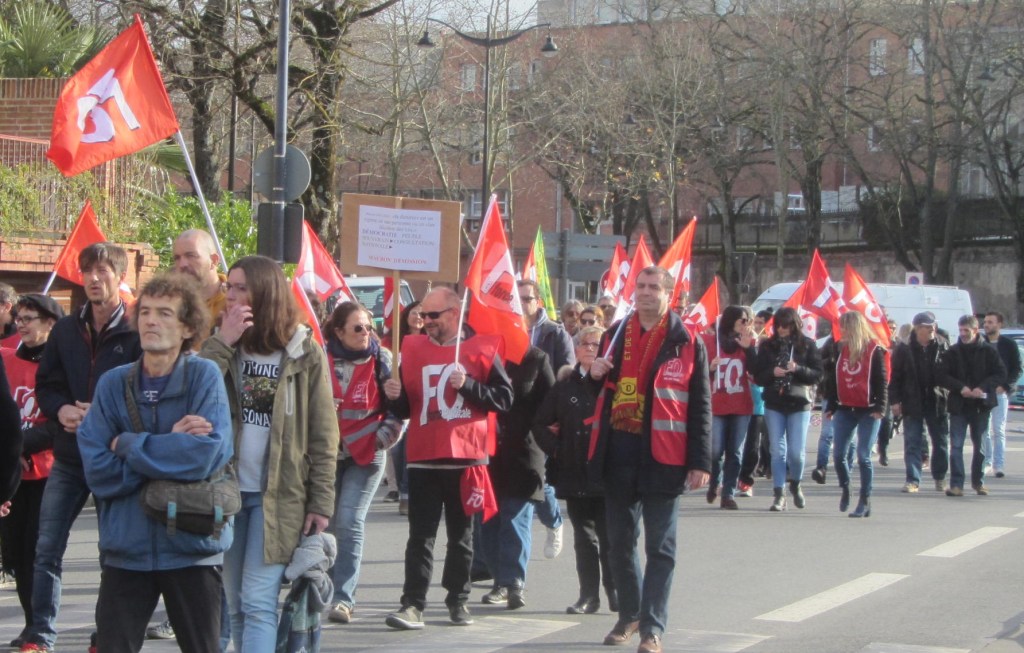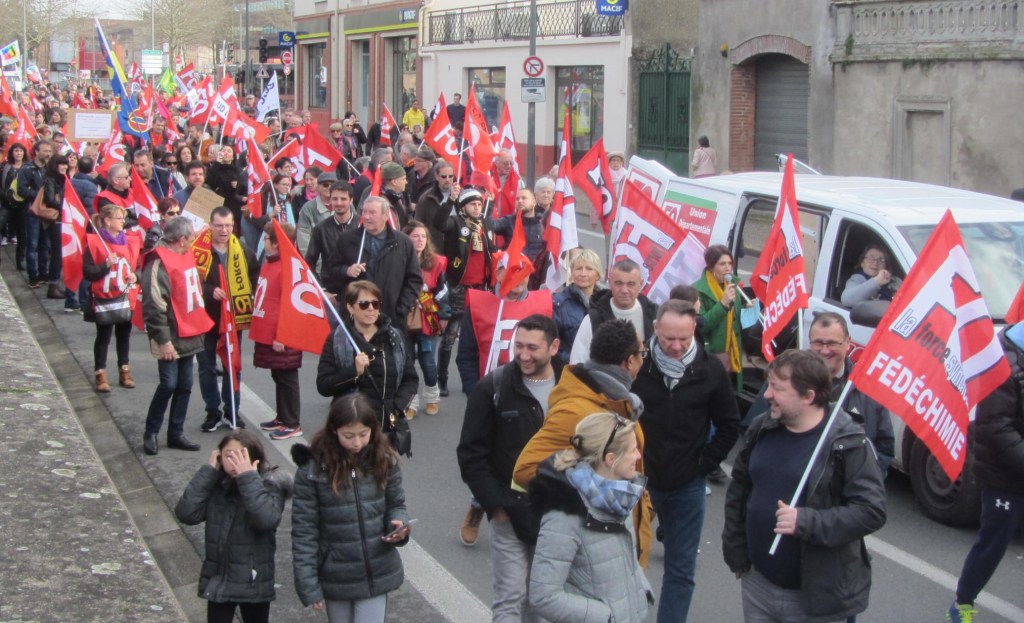 Faire barrage à Macron : barricade sur les Lices PompidouUne partie du cortège Force OuvrièreOn est là ! Pour maintenir nos pensions nous on est là !Nos retraites elles sont à nous ! On s’est battus pour les gagner, on se bat pour les garder !1,3 million dans toute la France.