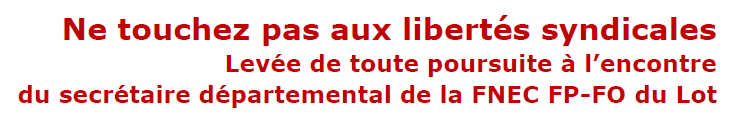 Notre camarade Alain Rey, secrétaire départemental du SNFOLC du Lot et secrétaire de la FNEC dans le même département, représentants Force Ouvrière des personnels au CTSD du Lot et commissaire paritaire académique certifié est l’objet de poursuites judiciaires suite au mouvement de protestation contre les E3C au mois de janvier.