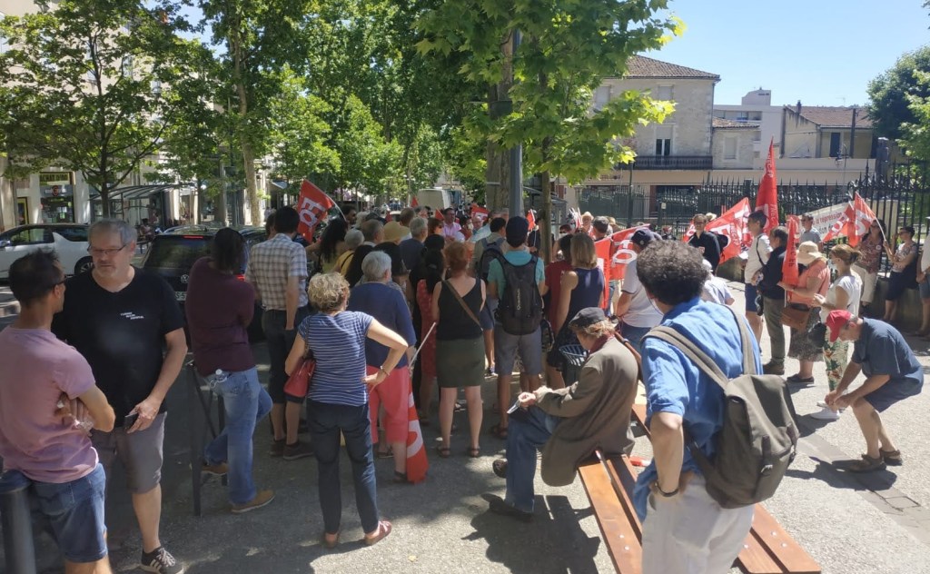 150 militants rassemblés pour soutenir notre camarade Alain Rey, secrétaire du SNFOLC du Lot et de la FNEC FP FO du Lot, convoqué au tribunal pour composition pénale car Il lui est reproché «d’avoir pénétré ou s’être maintenu, le 21 janvier dans l’enceinte du lycée Clément Marot sans y être habilité ou y avoir été autorisé par les autorités compétentes dans le but de troubler la tranquillité ou le bon ordre public».Il encourt une peine pouvant aller jusqu’à un an d’emprisonnement et 7500 € d’amende.