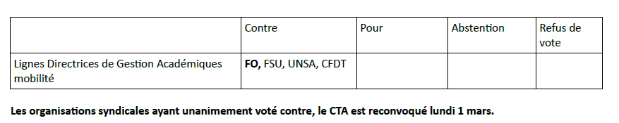 Le CTA du 11 février avait à son ordre du jour les Lignes Directrices de Gestion mobilités pour l’année 2021, c’est à dire les documents définissant les conditions des différents mouvements, personnels ATSS, directeurs de SEGPA, personnels enseignants du premier et second degré.