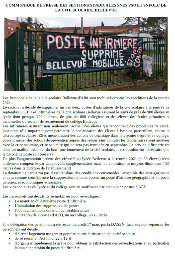 Communiqué de presse SNFOLC SNES-FSU de la cité scolaire Bellevue d’Albi snfolc81 actualités, mobilisations 19 mars 2021 1 Minute communique-de-presse-du-19-mars-2021Télécharger Partager : Partager sur X(ouvre dans une nouvelle fenêtre) X Partager sur Facebook(ouvre dans une nouvelle fenêtre) Facebook J’aime chargement… Similaire Publié par snfolc81 Voir tous les articles par snfolc81 Publié 19 mars 2021