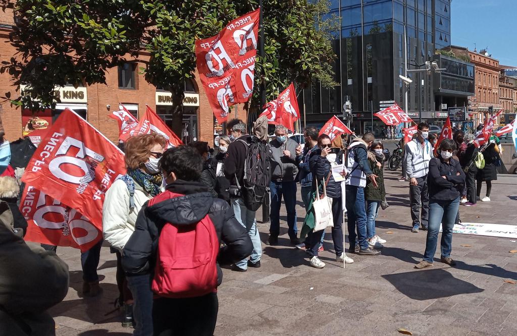 Une centaine d’AESH et de personnels de l’Éducation Nationale se sont rassemblés sur les allées Jean Jaurès après s’être réunis en AG le matin. L’AG a adopté une plate forme revendicative qui a été portée par une délégation de 6 AESH FO, FSU, SUD, CGT et un non syndiqué. La délégation a été reçue au rectorat à 14 H 30. Les militants de la FNEC FP-FO ont accompagné la délégation des AESH au rectorat.
