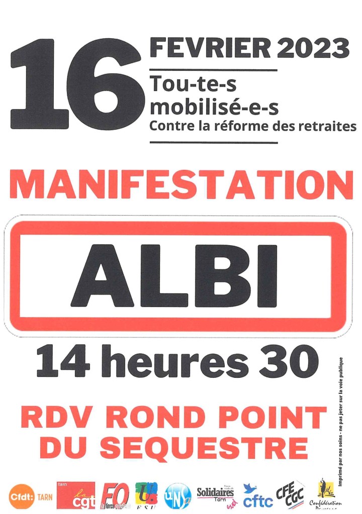 Tous à la manifestation le 16 février à Albi !